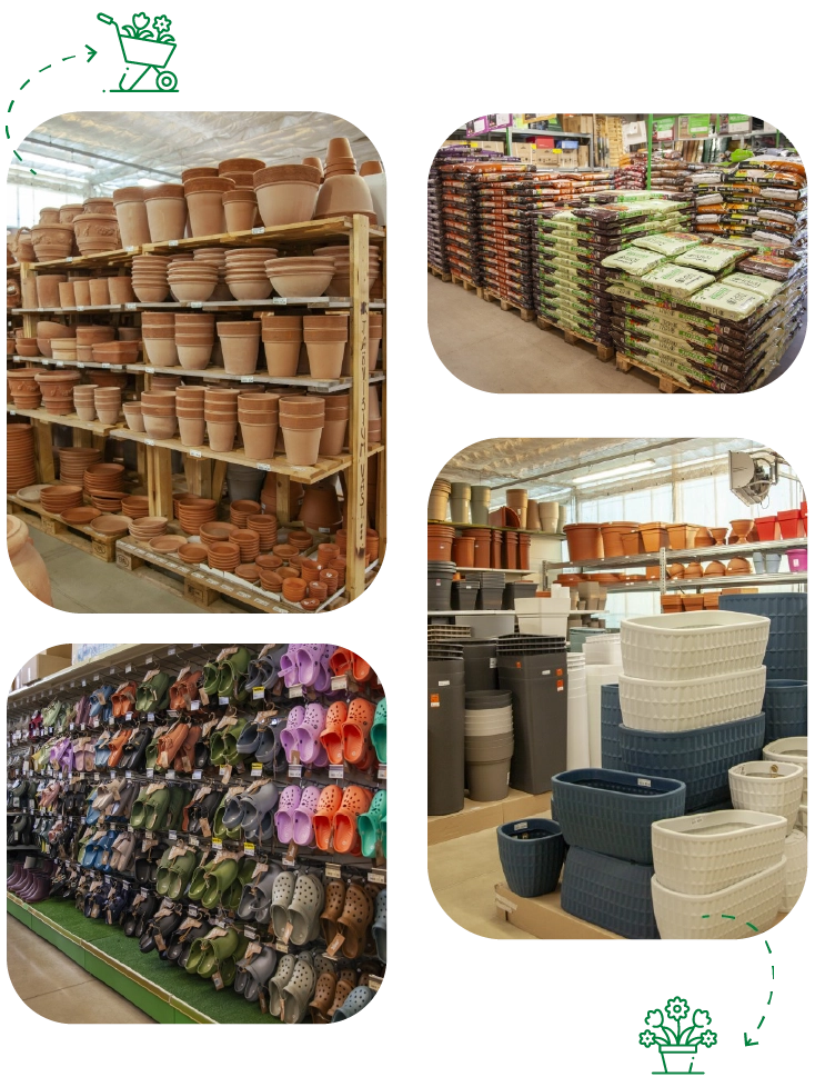 Qui potrai scegliere tra sistemi per l’irrigazione del giardino, concimi di alta qualità, prodotti per la protezione e la salute delle piante, sementi, terricci specifici, sassi e corteccia decorativa, vasi di ogni materiale e dimensione, attrezzi per la cura e la potatura, tessuti a taglio e serrette per la protezione delle tue piante, abbigliamento da giardino, casette per gli uccellini, oltre a un’efficace gamma di sistemi anti-zanzare per vivere al meglio gli spazi verdi.