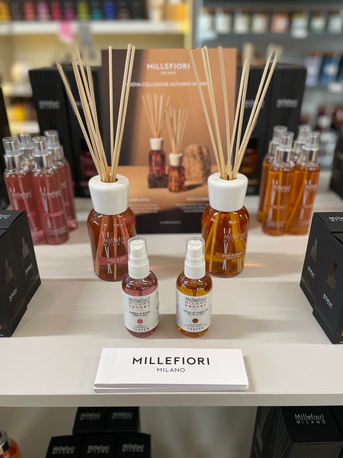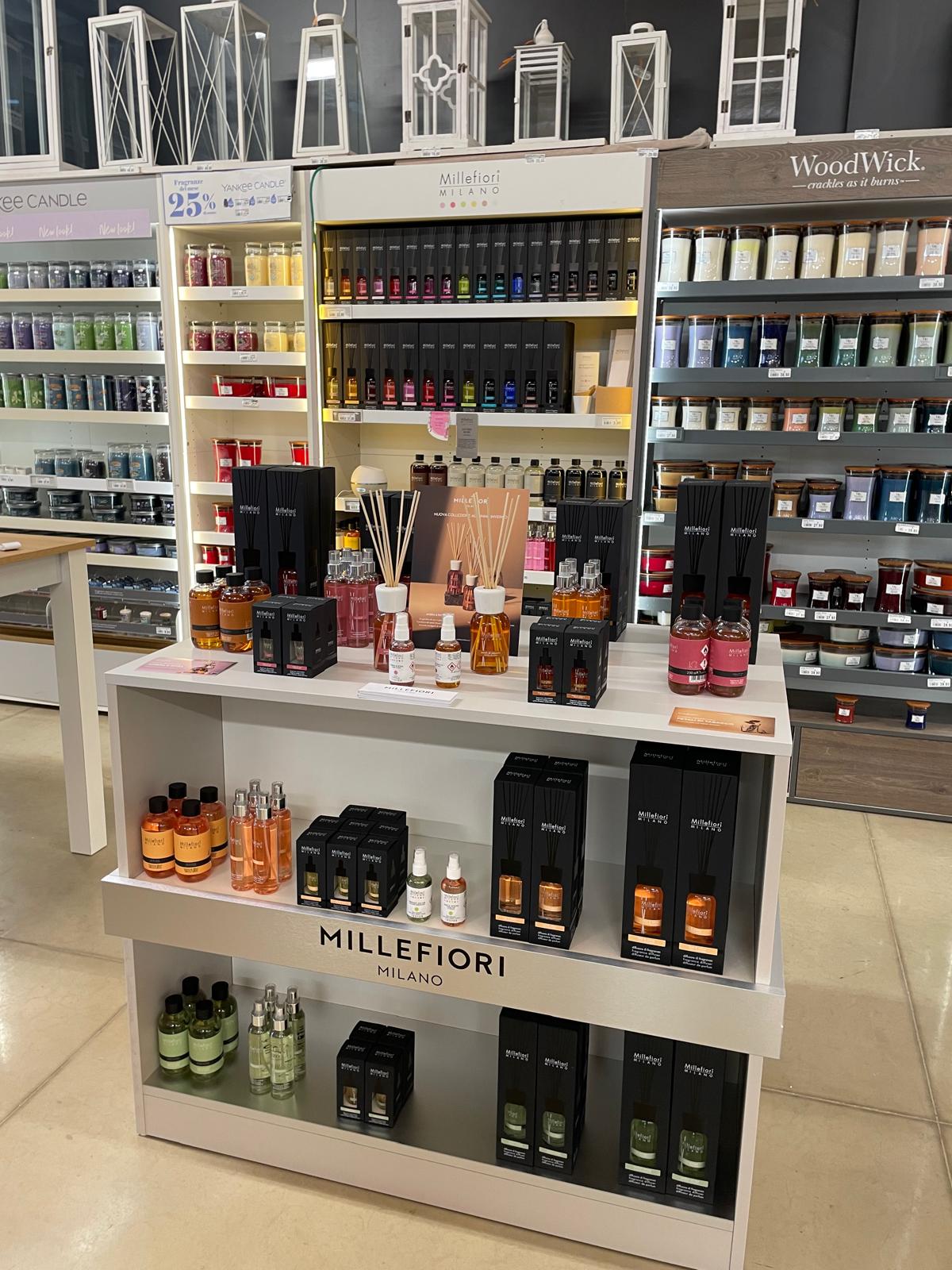 Una selezione curata di oggetti per la decorazione d’interni, dalle candele profumate Yankee Candle, Woodwick, ai diffusori e spray Millefiori, fino a complementi decorativi come vasi particolari, animali in resina, orologi e zerbini da interno ed esterno.